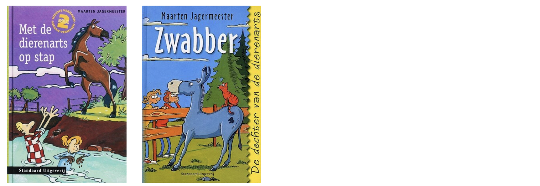 Leren lezen in de lagere school ging vlot en al snel werd ik een boekenwurm. Om de twee weken trok ik met mijn broers naar de bibliotheek Kielpark op zoek naar nieuw leesvoer. In deze kleine bib was het altijd rustig en konden we lekker snuisteren tussen de boeken. In de bib ontdekte ik de boeken van Maarten Jagermeester. In mijn jonge jaren was ik er rotsvast van overtuigd dat ik dierenarts zou worden. Jagermeester is auteur én dierenarts en schrijft jeugdboeken over zijn dierenartspraktijk. Ik verslond zijn volledig oeuvre. Ik denk dat het de eerste echte leesboeken - zonder prentjes - waren die ik las. Enkele jaren later kreeg ik trouwens een grote hondenangst en werd de 'dierenartsdroom' opgeborgen.